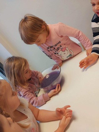 Żuczki tworzyły kolorowe mgławice z zabarwionej soli kuchennej, wykonały własną Galaktykę zamkniętą w słoiku, efekt końcowy był niesamowity.