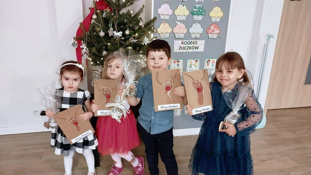 Dzieci wykonywały pierniczki w nieco innym wydaniu, z masy solnej . W kolejnych dniach miały za zadanie udekorować własnoręcznie przygotowane ozdoby choinkowe . Sprawiło to Żuczkom dużo radości. Wspólnie uznaliśmy, że pierniczkowe babeczki świąteczne to obowiązkowy punkt przygotowań do Świąt Bożego Narodzenia . Podczas Naszych przygotowań nie mogło zabraknąć ozdobnego papierowego łańcucha na choinkę . Dzieci dowiedziały się jakie tradycje związane są ze Świętami Bożego Narodzenia oraz w jaki sposób ludzie przesyłają sobie życzenia .