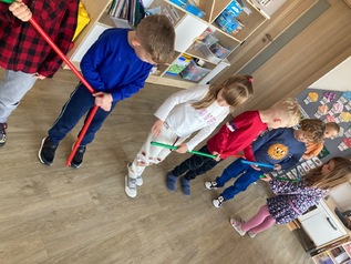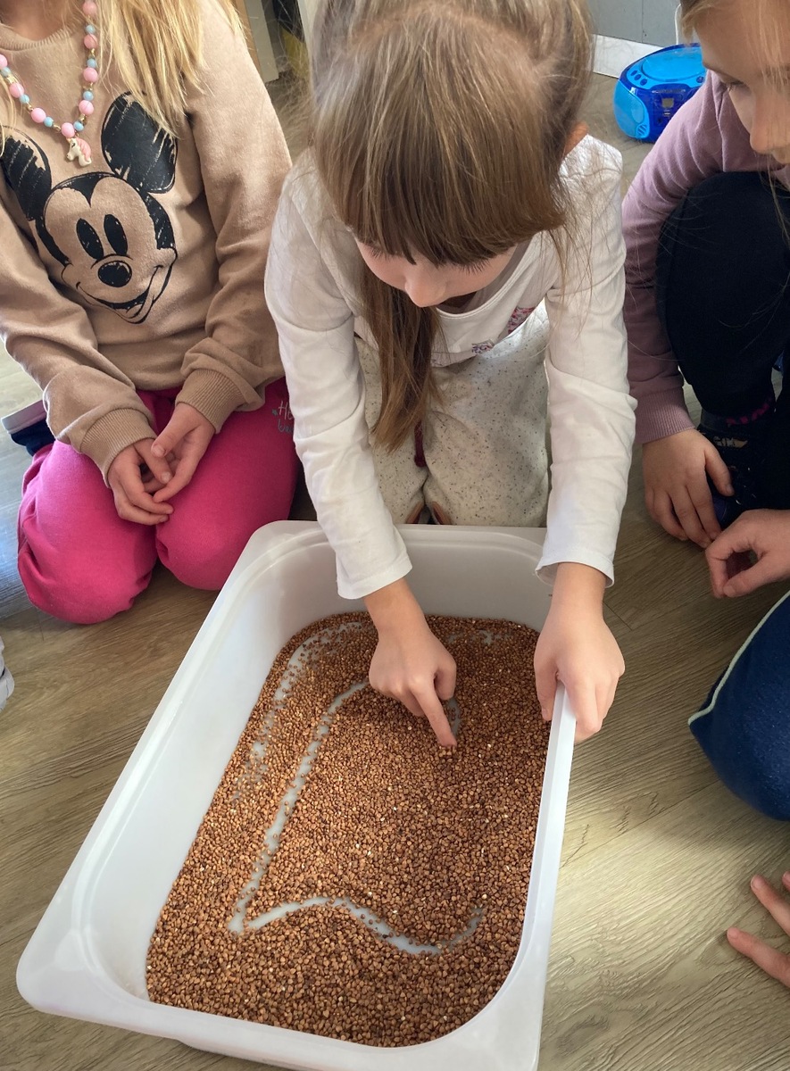 Kompetencje matematyczne rozwijaliśmy poprzez liczenie na materiale konkretnym i zabawami na macie do kodowania.