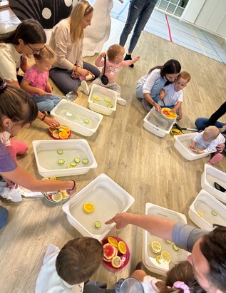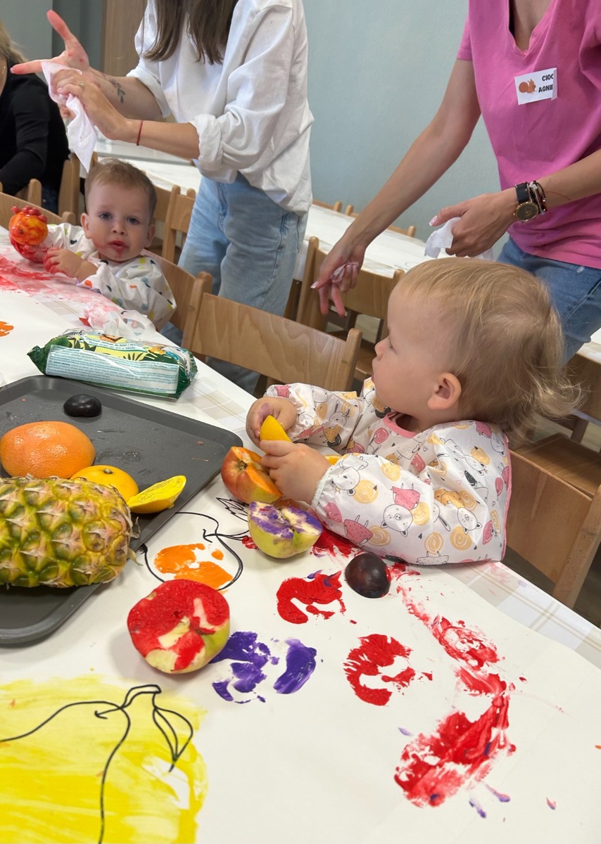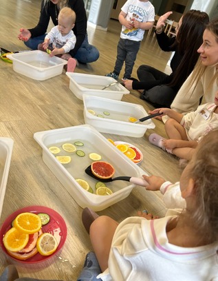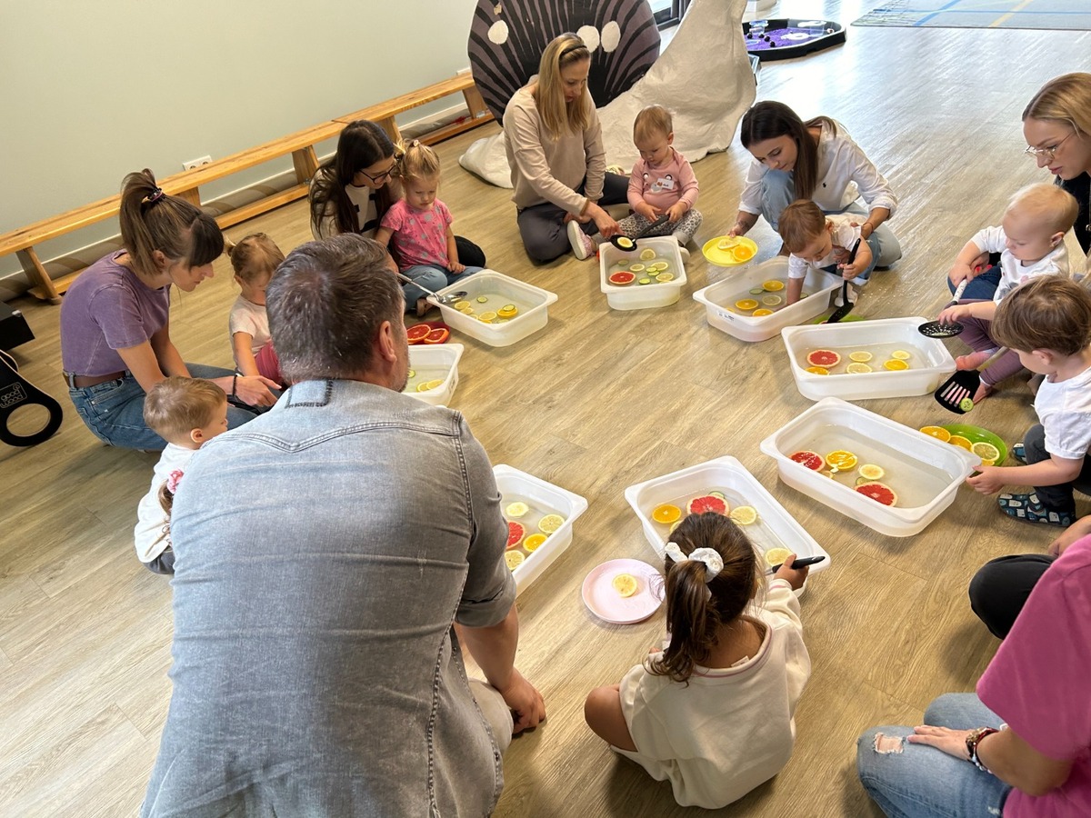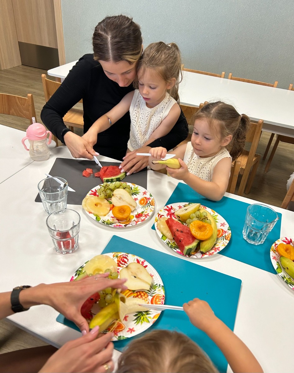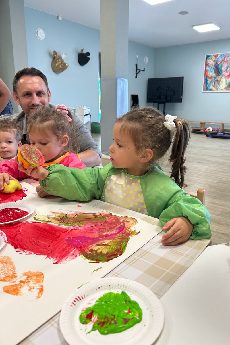 Za nami trzy dni pełne uśmiechów i zabawy! Rodzice razem z dziećmi poznawali przedszkole poprzez zabawy sensoryczne, muzyczne i… wspólne przygotowanie sałatki owocowej.