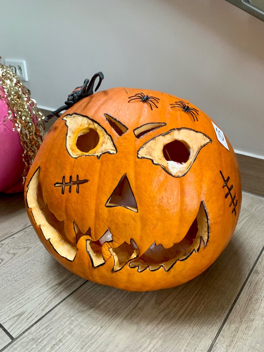 Kupujemy dynię – prawdziwe warzywo – i razem z dzieckiem dekorujemy ją według własnego pomysłu. Może być strasznie, śmiesznie albo zupełnie nietypowo – pełna dowolność! ✨