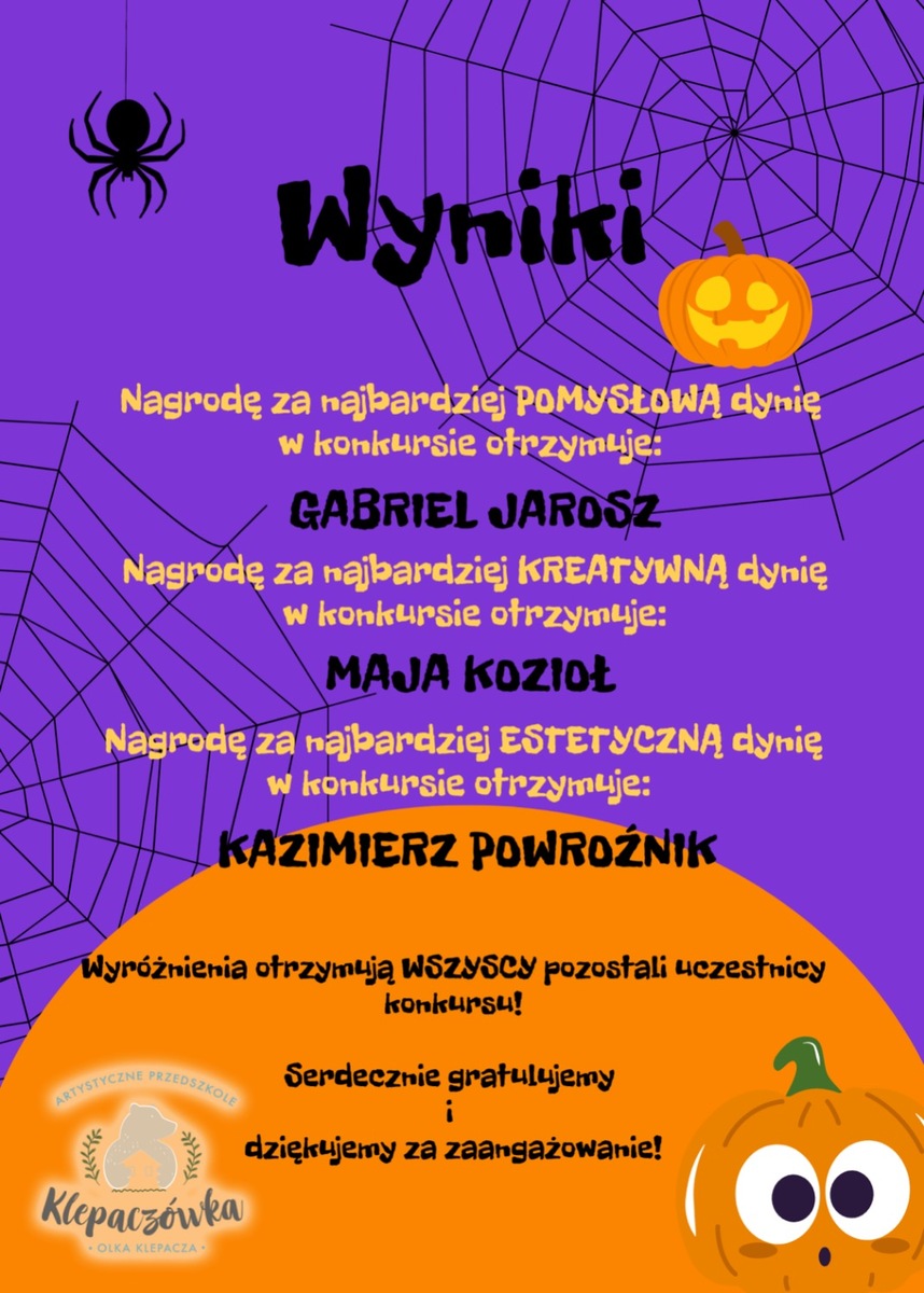 Nasz konkurs na najpiękniejszą dynię został rozstrzygnięty!