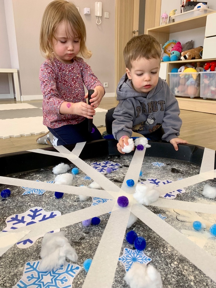 Rozmawialiśmy o zimowych symptomach i o tym, jak odpowiednio ubierać się w chłodne dni, aby było nam ciepło i bezpiecznie. Dzieci malowały na śniegu, rozwijając swoją wyobraźnię i kreatywność, a także brały udział w wielu innych zimowych zabawach ruchowych i plastycznych. Był to czas pełen uśmiechów, odkrywania i dobrej zabawy. 🙂🥰