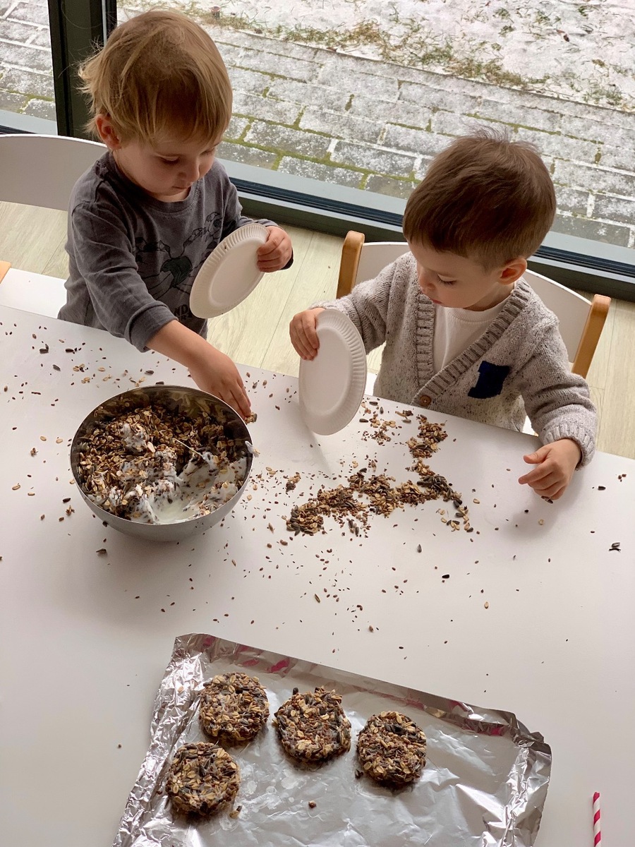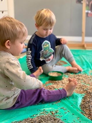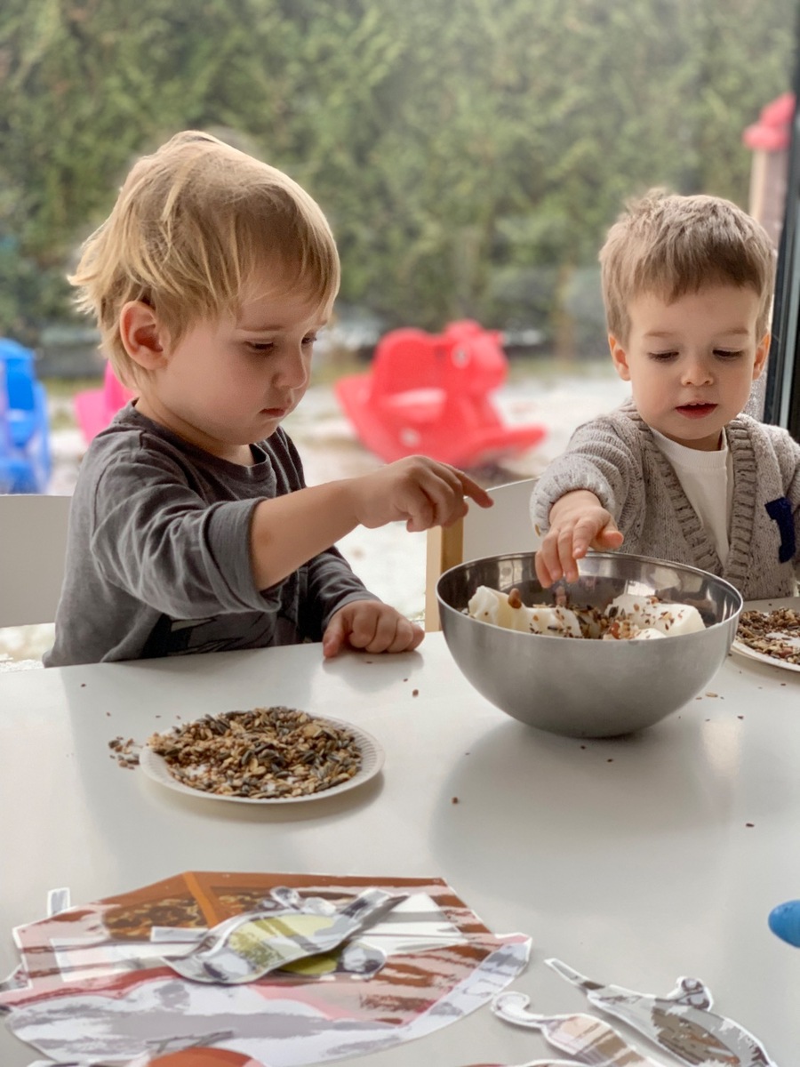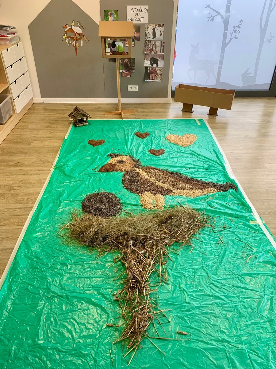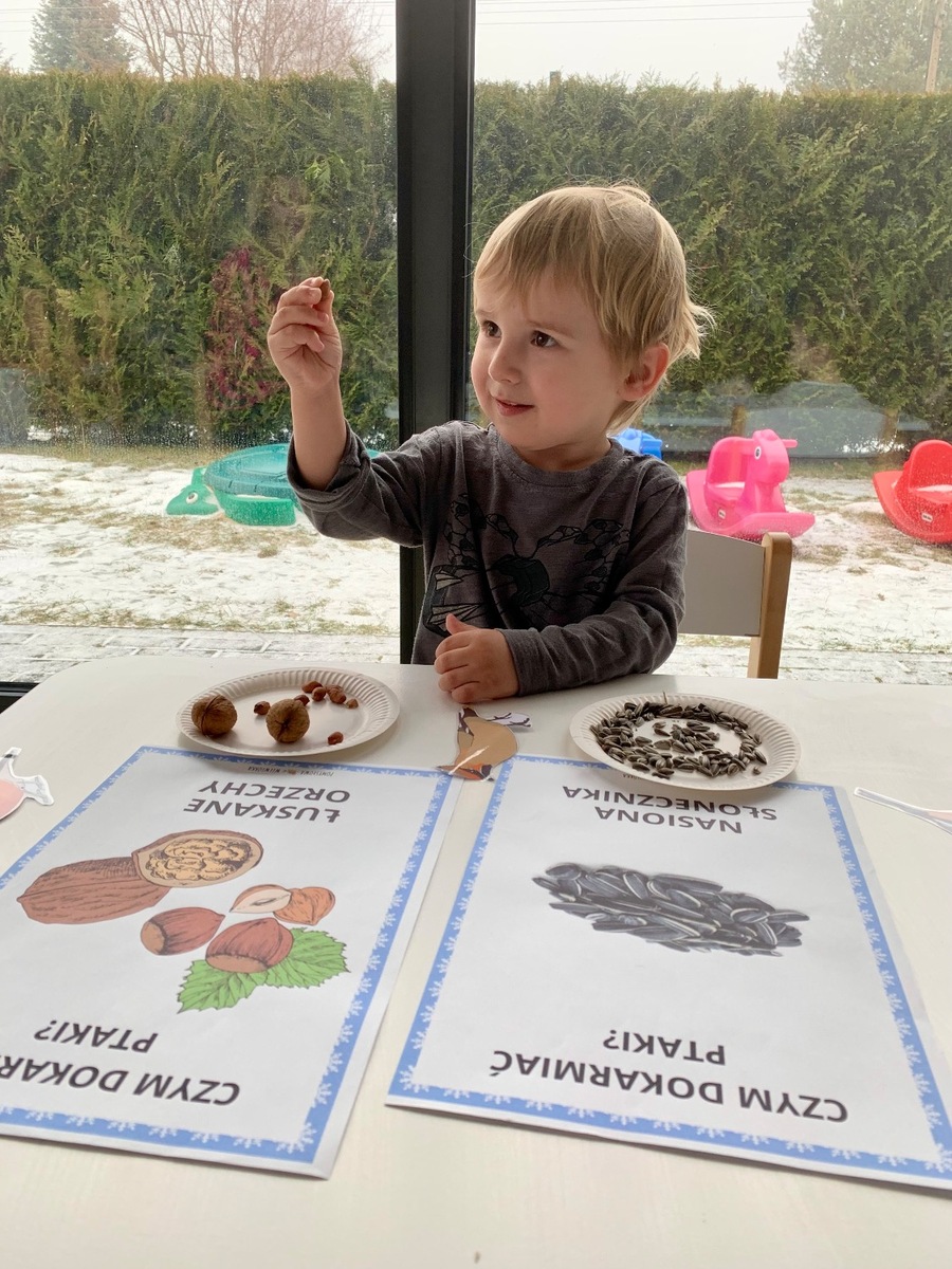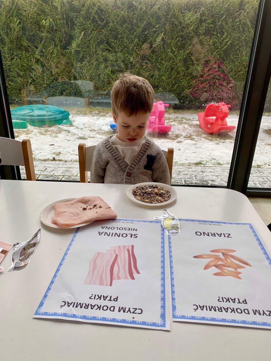 W ostatnim czasie Wiewiórki 🐿️ zajmowały się dokarmianiem ptaszków oraz zwierząt, które zimą mogą potrzebować naszej pomocy 🐦⬛🦌. Dzieci brały udział w zabawach sensorycznych, poznając różne faktury 🦶. Wspólnie przygotowaliśmy własne przysmaki dla ptaków, a przy okazji rozmawialiśmy o tym, które zwierzęta zapadają w sen zimowy, a które pozostają aktywne. Była to cenna lekcja empatii, troski o przyrodę i dobrej zabawy. ♥️🥰