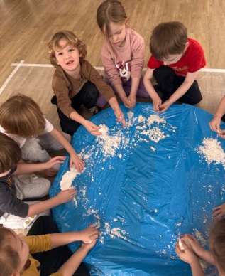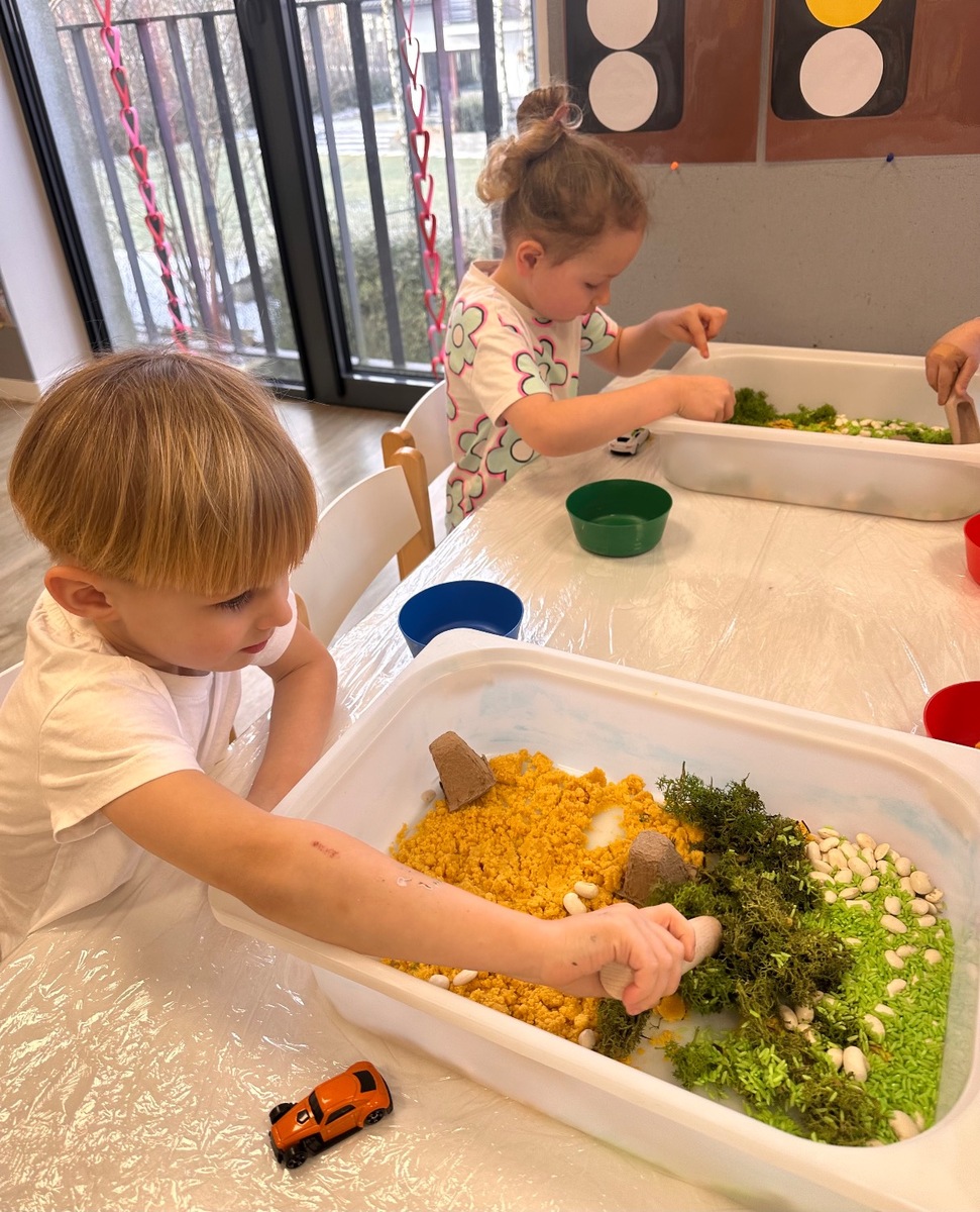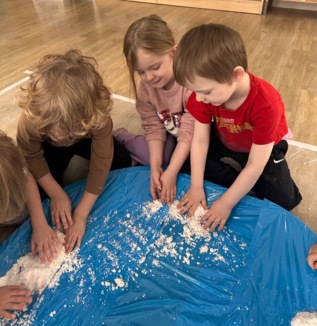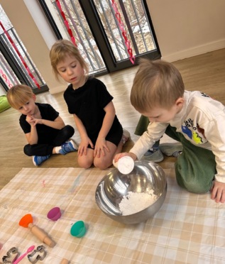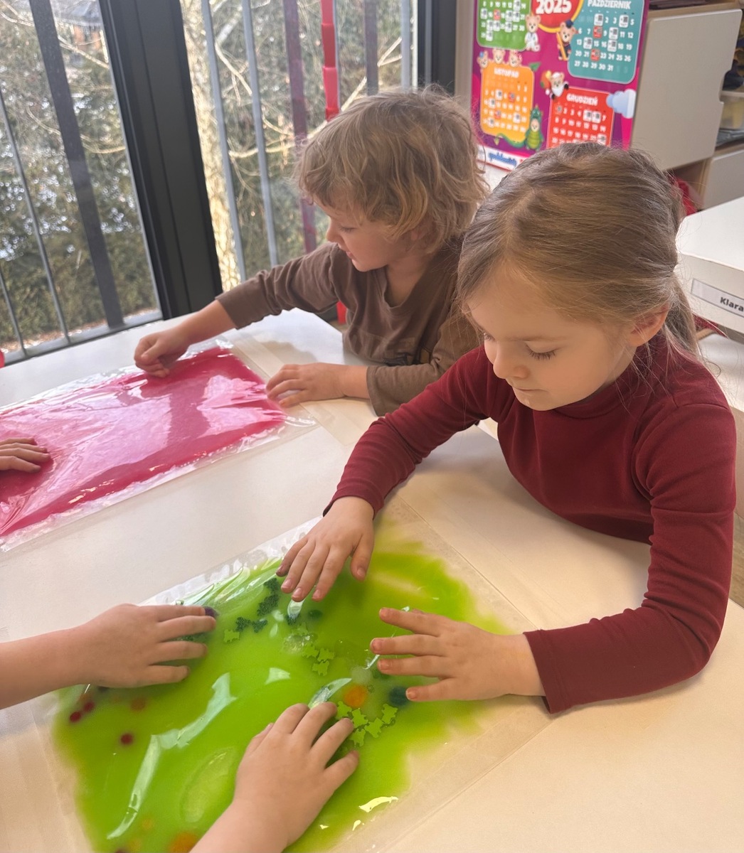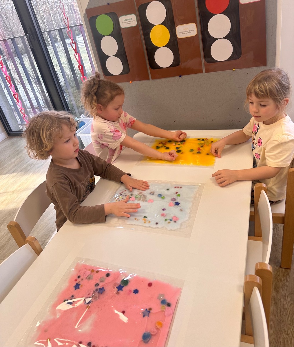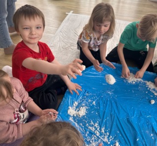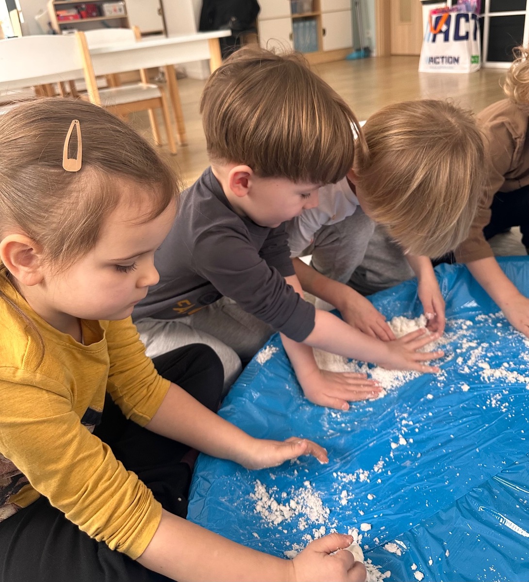 W pierwszym tygodniu ferii zimowych grupa mróweczki bawiła się sensorycznie różnymi, własnoręcznie wykonanymi masami. Robiliśmy wspólnie domowy śnieg, ciastolinę i slajm. Przy kolorowej zabawie usprawnialiśmy pracę palców i dłoni.