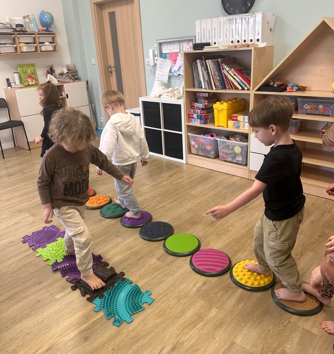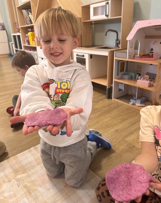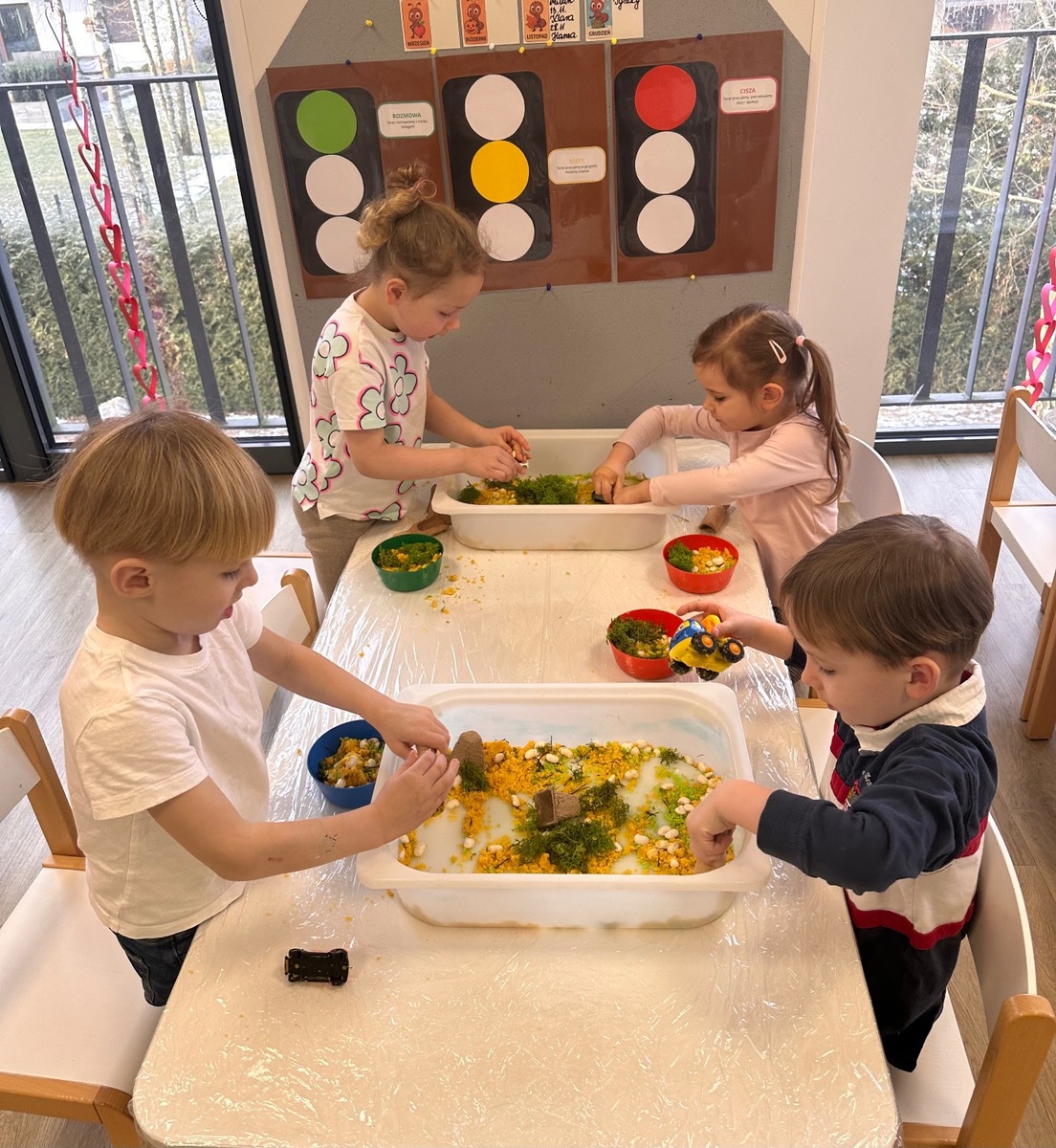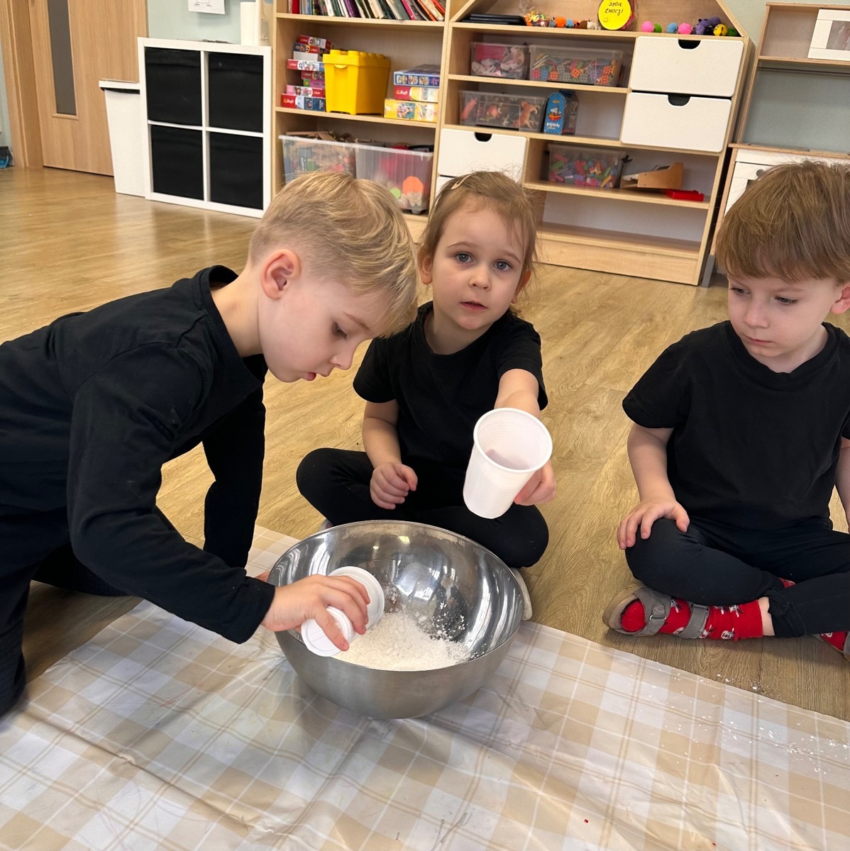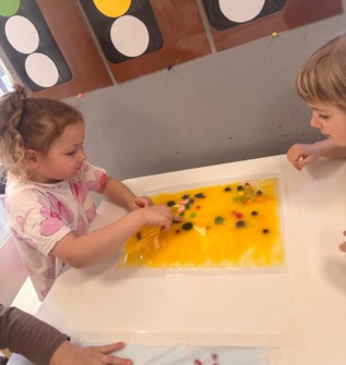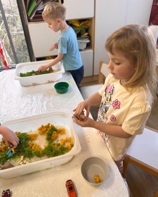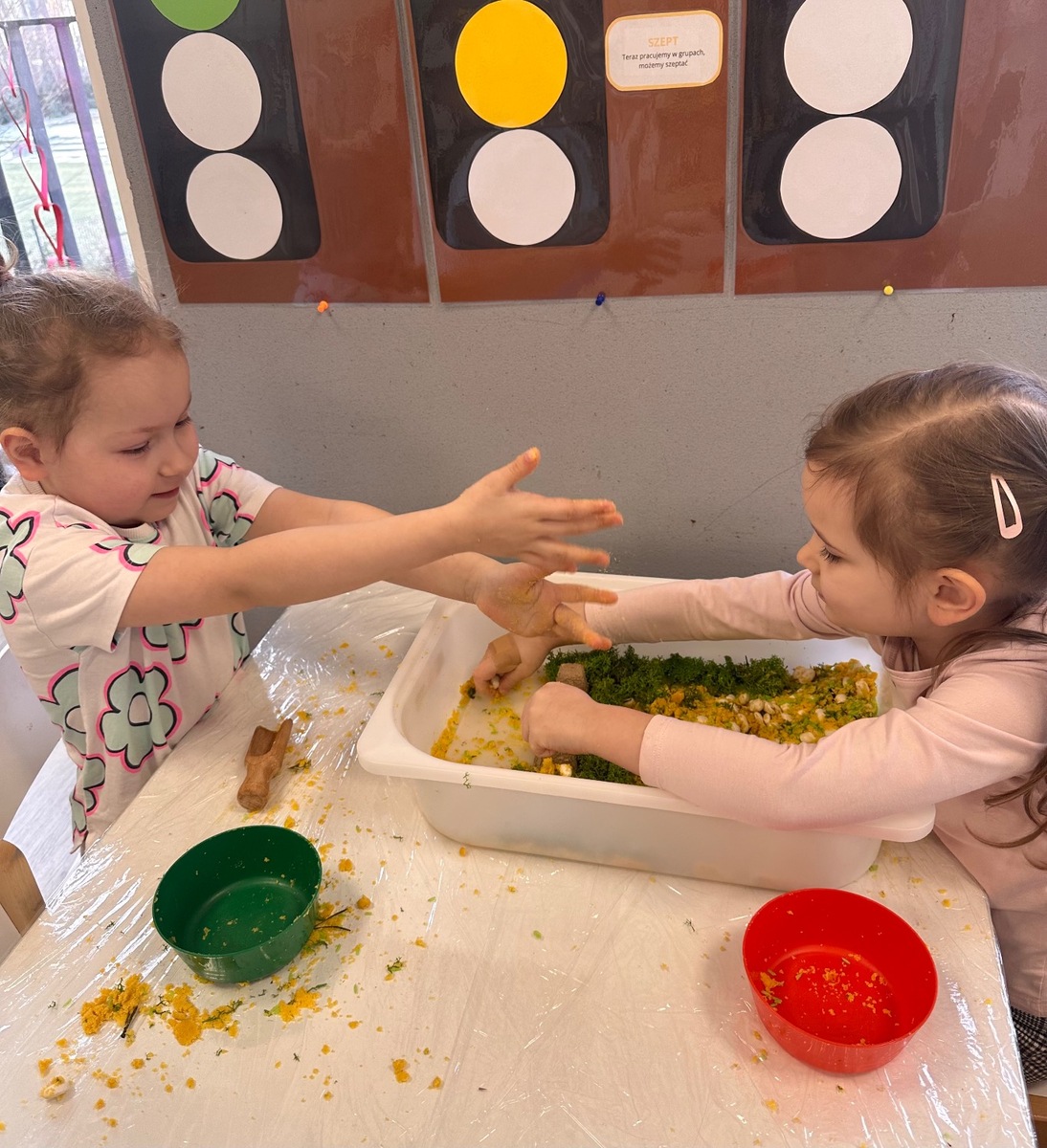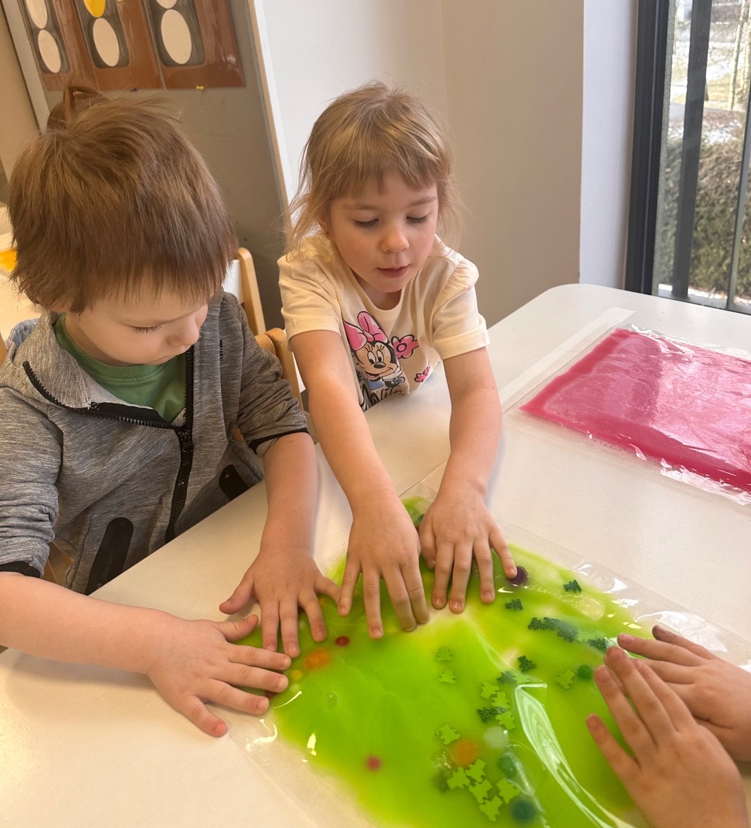 W pierwszym tygodniu ferii zimowych grupa mróweczki bawiła się sensorycznie różnymi, własnoręcznie wykonanymi masami. Robiliśmy wspólnie domowy śnieg, ciastolinę i slajm. Przy kolorowej zabawie usprawnialiśmy pracę palców i dłoni.
