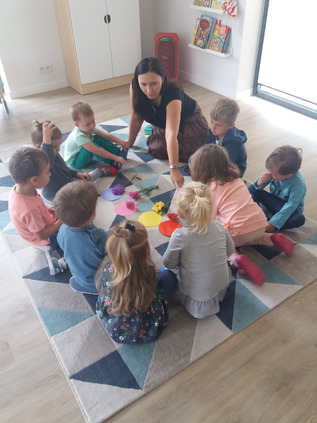 Drugi tydzień przedszkola upłynął Żabkom pod hasłem: Poznajemy siebie nawzajem :) Przedszkolaki brały udział w zabawach integracyjnych na łonie natury. Doskonaliły syntezę wzrokową i słuchową oraz koordynację ruchową i motorykę małą. Żabki uczestniczyły także w zajęciach rytmicznych i tanecznych. NIe zapomnieliśmy również uczcić Międzynarodowego Dnia Kropki.