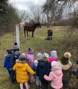 Każdy spacer w naszym przedszkolu jest wyjatkowy, poznajemy nowych "sąsiadów" na ostanim spacerze poznaliśmy dwie piękne Klacze.