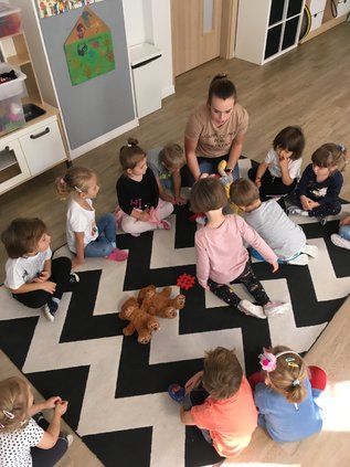 Od września Sarenki rozpoczęły kolejny rok przedszkolnej przygody, już oficjalnie w grupie 3- latków. Przypomniały sobie kodeks przedszkolaka, czarodziejskie słowa i chętnie brały udział w zabawach integracyjnych. W pierwszych tygodniach września Sarenki poznały pojęcie „para” i tym samym zaczęły dobierać się w pary. Doskonaliły również umiejetność samodzielnego zakładania sweterków i bucików oraz wykonywały ćwiczenia grafomotoryczne. W naszym planie tygodniowym nie zabrakło także licznych zajęć dodatkowych tj. PROGRAMOWANIE, TAŃCE, ANGIELSKI oraz ZAJĘCIA SPORTOWE To będzie rok pełen niezapomnianych przygód ! :)