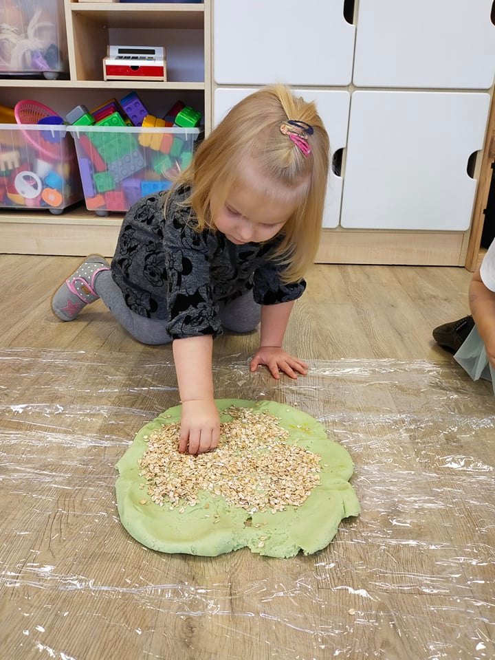 Żuczki uwielbiają zabawy sensoryczne, jest to jedna z ulubionych form spędzania czasu w przedszkolu. Takie namacalne doświadczenie otoczenia zachęca maluchy do poznawania, odkrywania i rozwoju. W tym tygodniu dzieci miały dostarczone różnorodne bodźce z wykorzystaniem kolorowej ścieżki i dodatków w postaci słonecznika, makaronu, pestek dynii oraz płatków owsianych.